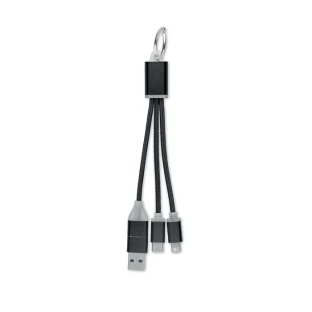Brelok do kluczy z kablami do ładowania z wejściem: 2 w 1 typu C i typu A oraz micro-B (2 w 1 pin) i wyjściem typu C.